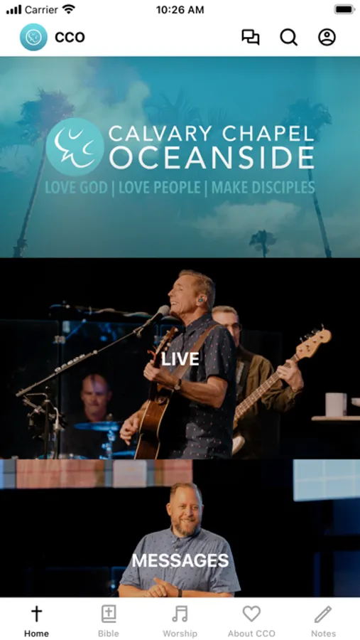 The Calvary Chapel Oceanside app was developed with the Subsplash App Platform.