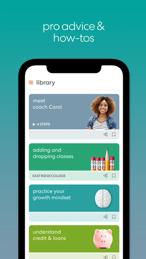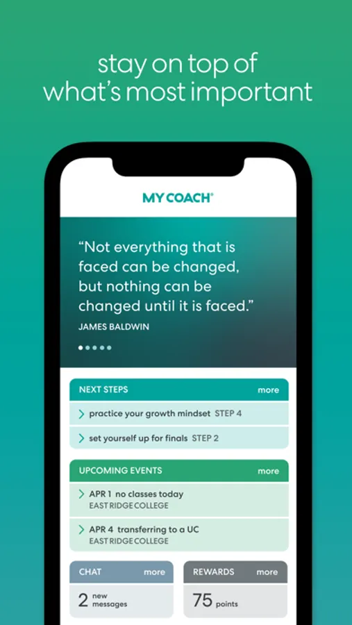 College doesn’t have to be an overwhelming stream of deadlines and to-dos. We promise! With the MyCoach® app, everything is in one place, personalized to your needs, with tips from experts and coaches along the way.