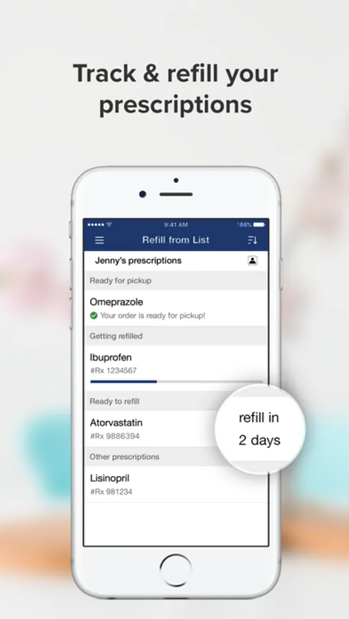 It's easier than ever to refill your and your family's prescriptions. You can view all your prescriptions in a list (including prescription numbers, dosage, quantities, refills remaining, and expiration dates). You can also just scan the label on your prescription to order a refill.