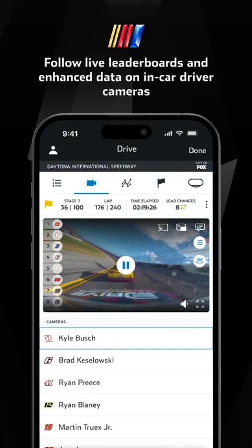 Live On-Track and In-Car Driver Cameras for NASCAR Cup and Xfinity Series