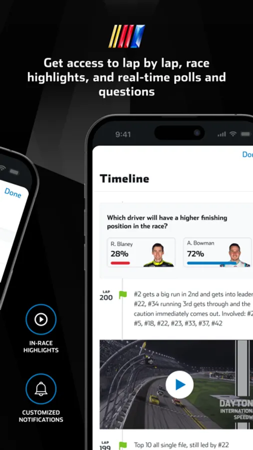 Timeline - Access to lap by lap information and in-race highlights for all NASCAR Series