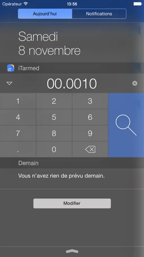 Grâce à son Widget pour iOS 8 vous pouvez rechercher en un instant n'importe quel élément du Tarmed depuis le centre de notifications.
