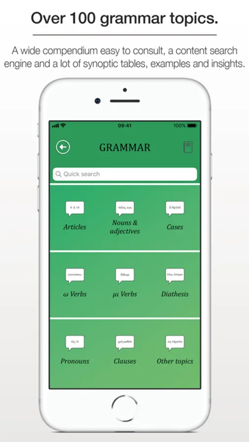 iii) #1 in Italy among students attending Liceo Classico and universities: this app became - and still is - the main reference tool for Ancient Greek studies in Italy (where it is named “Greco Antico App”). It has now been rearranged with a new layout and an English translation so that students worldwide are able to enjoy its functionalities.