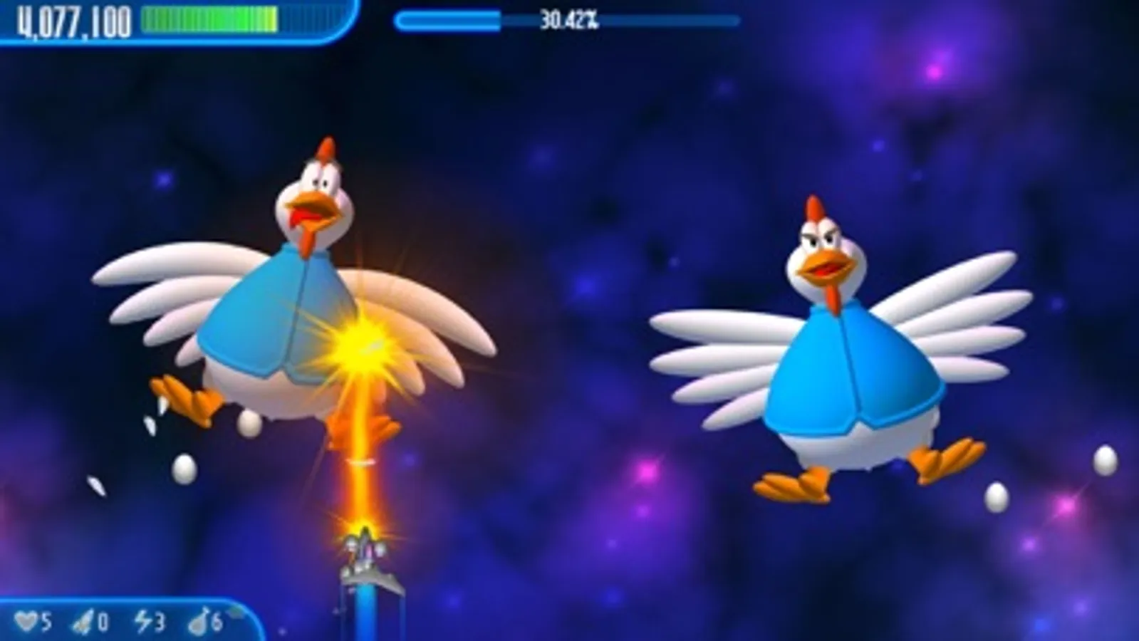 Chickens. For centuries we have oppressed them, grilling, roasting, stewing, and stuffing them in buns. The time has come for us to pay. Intergalactic chickens are invading Earth, seeking revenge for the oppression of their earthly brethren! It's time for you to fight for our ancestral right to omelettes. Will you succeed? Will the future of chicken burgers be secure? Or will you end up as part of the menu in a galactic chicken restaurant?