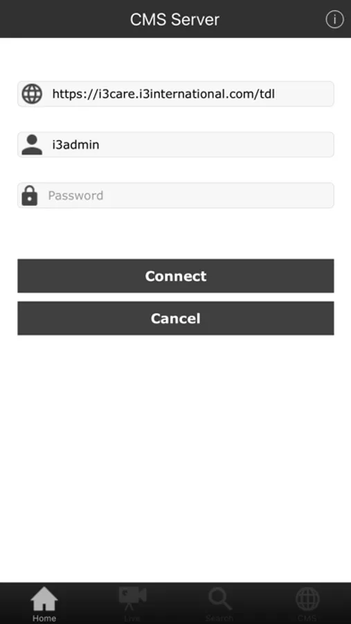 Connect to SRX-Pro Server, or connect to i3 CMS for greater access to server statuses and statistics