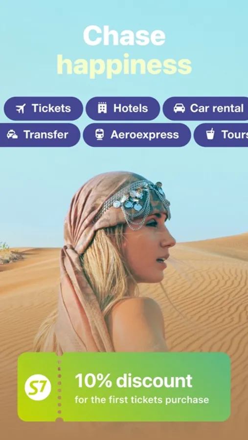 Because we want you to travel as much as you want! Sign up and log in to the app, book a flight within Russia, and the discount will appear in your cart automatically.