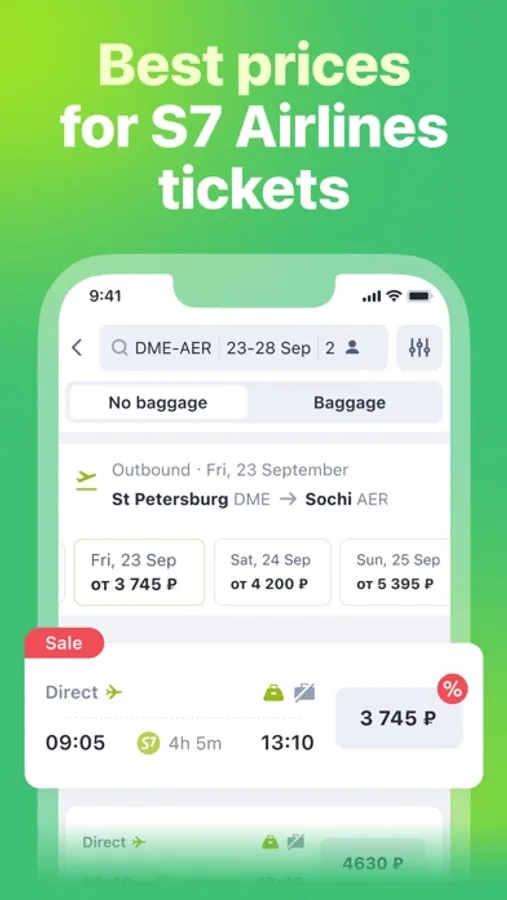 Flights, hotels, excursions and tours, car rental, transfer, and Aeroexpress tickets — all in one app