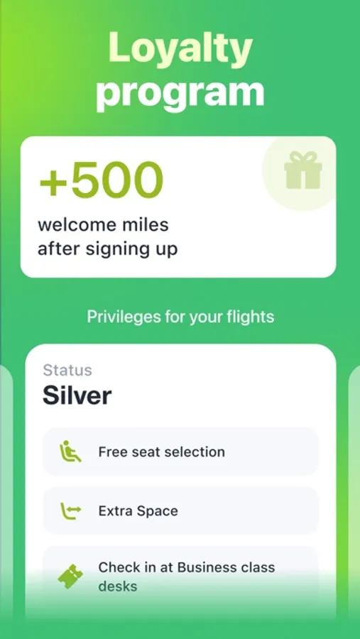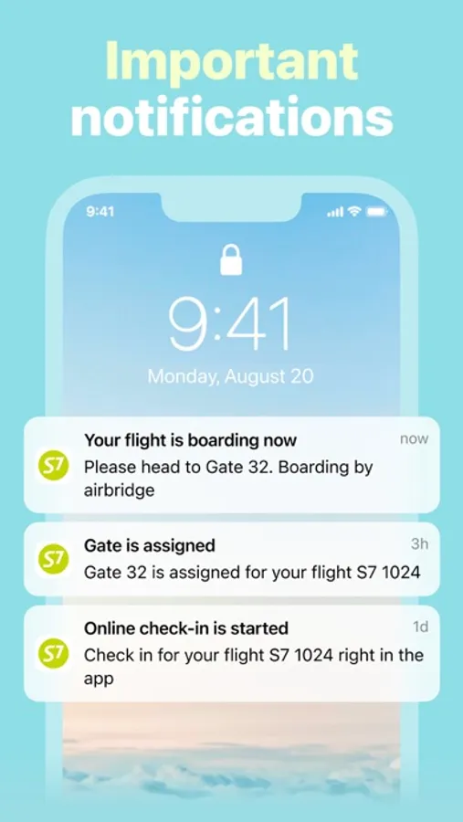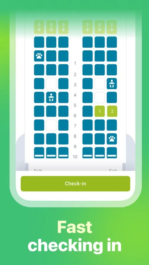 Don't waste time at the airport. Check in, get the boarding pass, choose or change your seat directly in the app. As soon as check-in begins, you’ll get a message.
