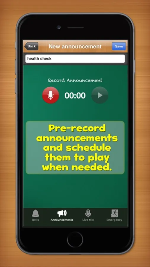 5. Pre-record your own public announcements, using the built-in voice recorder.