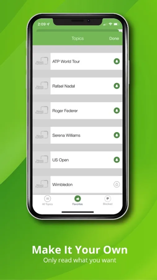 * Choose your favorite topics to stay informed and block topics you don’t want. You can follow players like Roger Federer, Novak Djokovic, Rafael Nadal, Andy Murray, Serena Williams, and tournaments likel ATP and WTA tournaments.