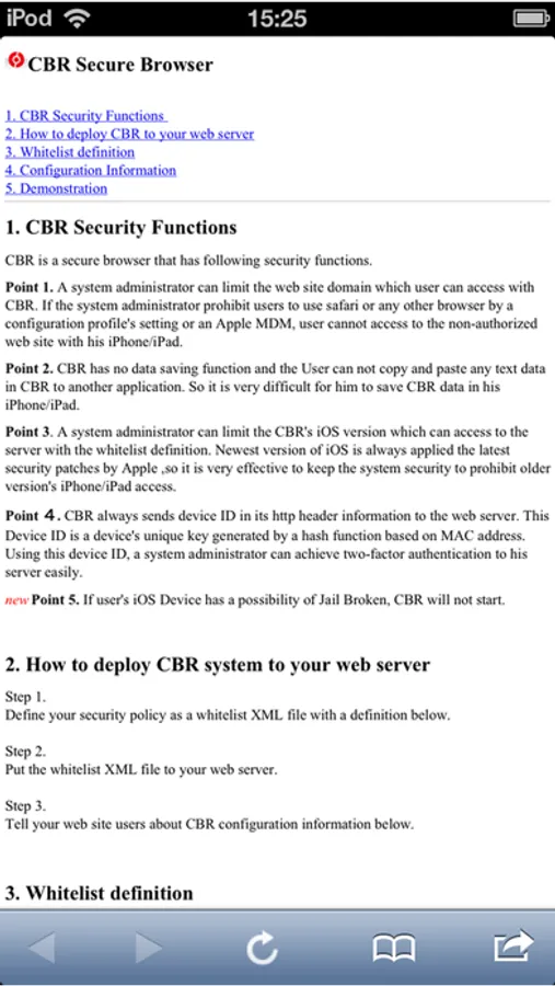 情報漏洩の危険性がある不正アプリやマルウエアの感染を防ぐために、JailBreakの可能性がある端末ではMDM Browser は起動しません。