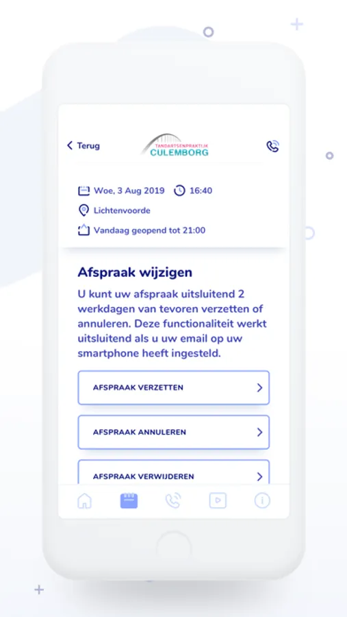 - Wijzig uw afspraak of laat de praktijk u terugbellen.