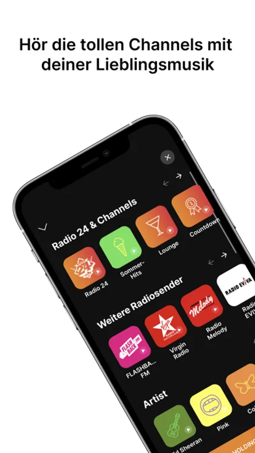 Mit der offiziellen RADIO 24-App bringen wir dir ganz viele Hits auf dein Smartphone. Du entscheidest, was du hörst! Wähle aus ganz vielen Webchannels deine Lieblingsmusik aus.