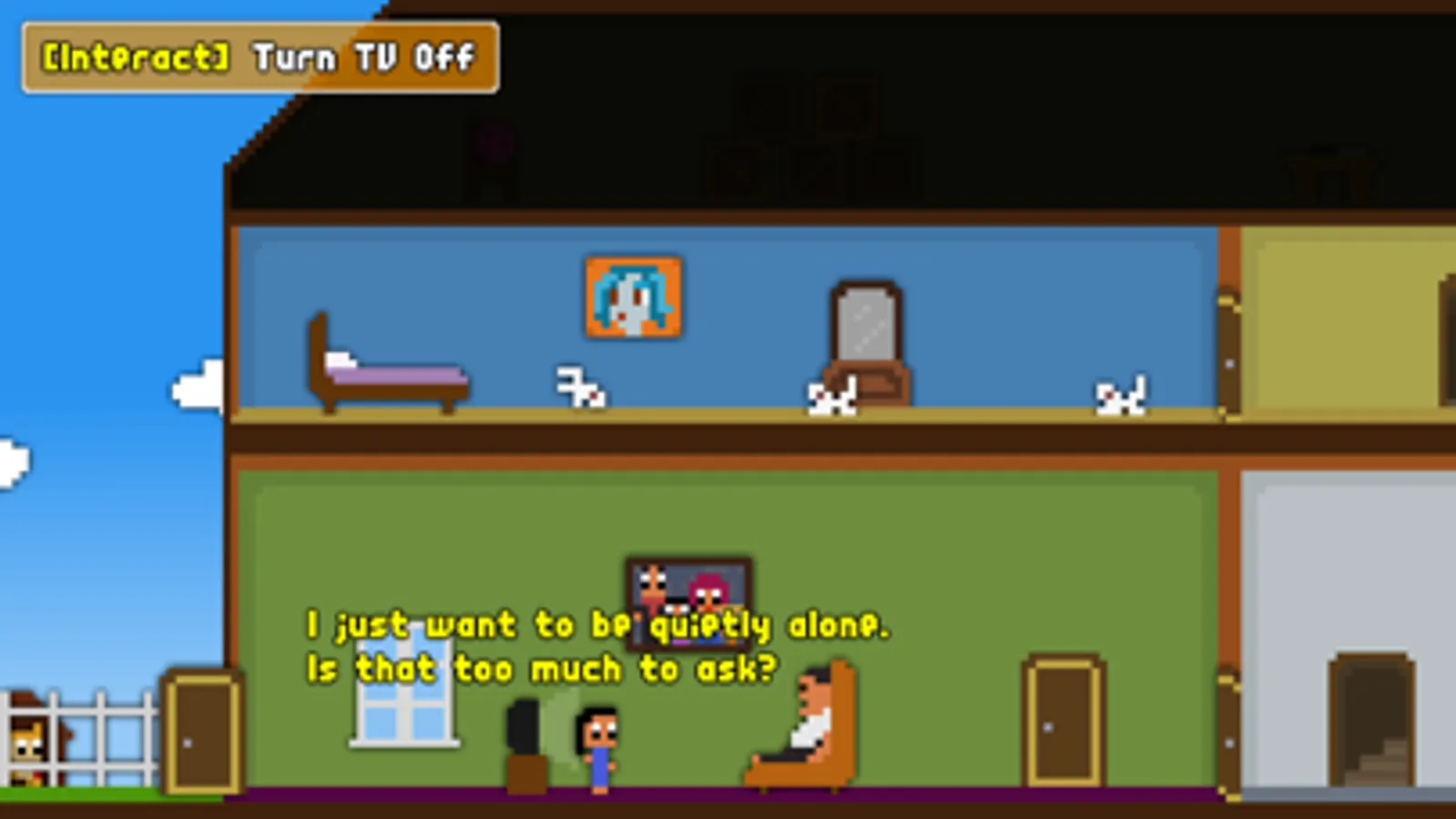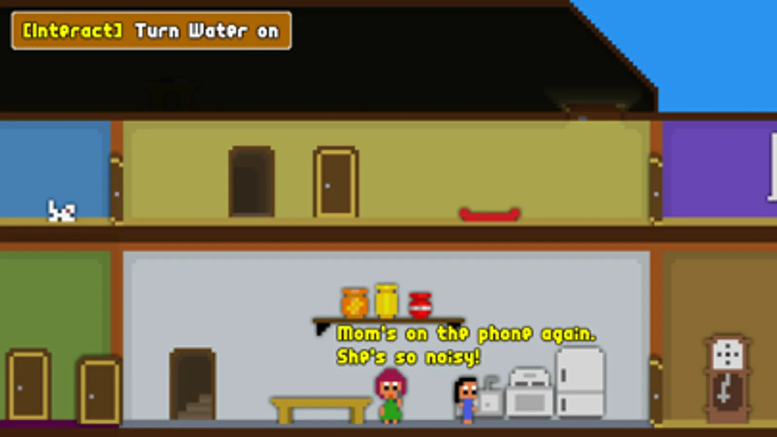 After an annoying day at school, you just want some peace and quiet. But everything at home is so noisy! Mr. Peabody is obsessively mowing his lawn, Dad is channel surfing and Mom is yapping on the phone. Your pesky kid brother won't go to bed, and even your pet kittens are driving you crazy! Explore, interact with your environment and solve puzzles.