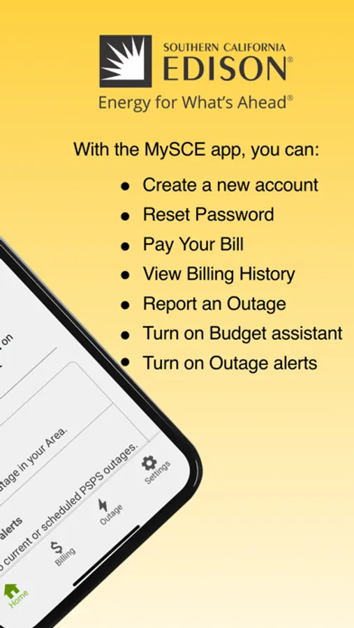 The MySCE app makes it easy to manage your SCE residential and business accounts from any mobile device. You can pay your bill, report an outage, check outage status by address, and more.