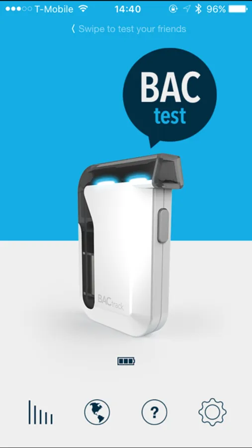 • Test yourself and your friends with your BACtrack. Swipe the home screen to test in Friend Mode.