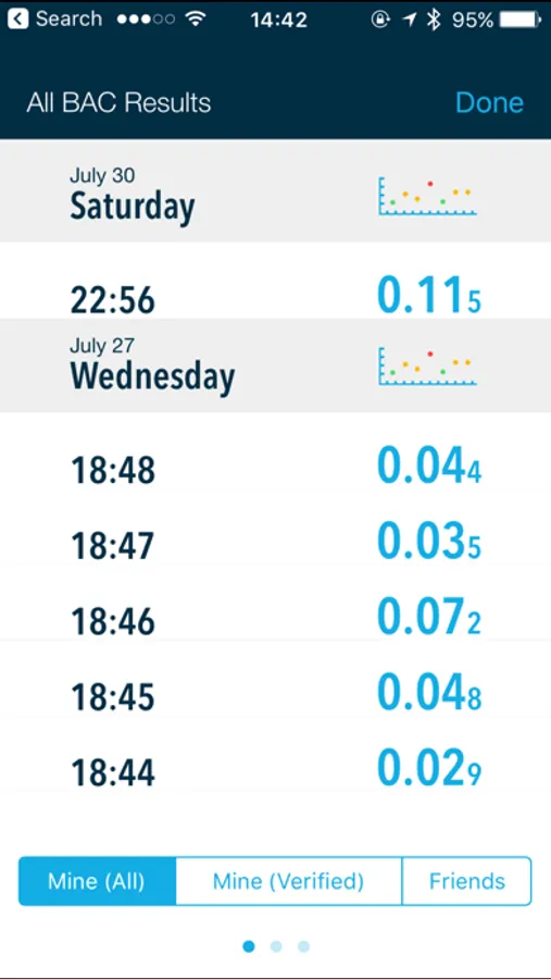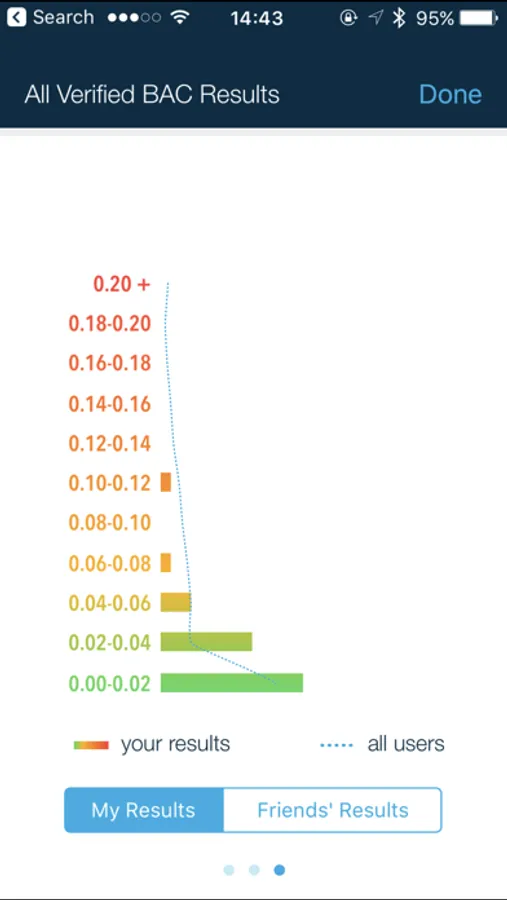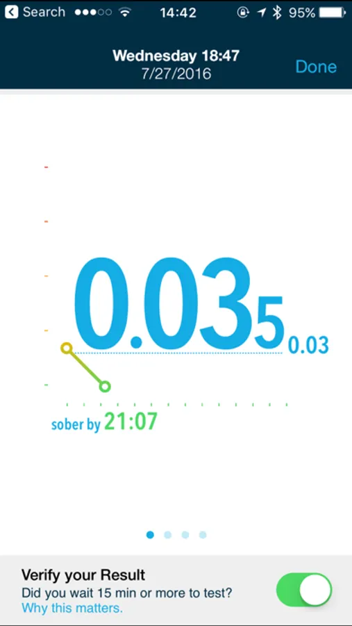 • Saved BAC readings are automatically mapped on the Tracking Graph, allowing you to get a clear picture of your drinking habits and gain insight about how your body processes alcohol.