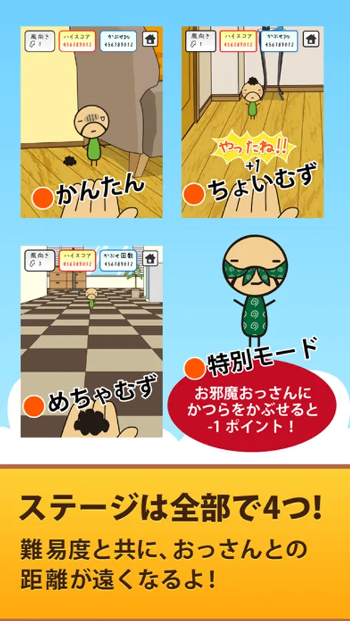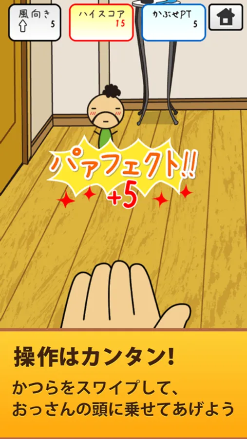 ちいさいおっさんにかつらを投げて、かぶせるゲームです。