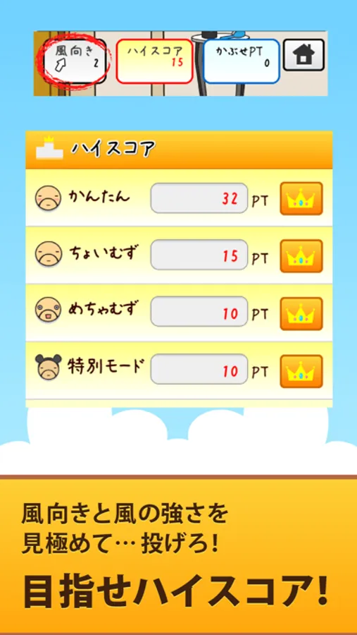 かんたんでハイスコアが10ptより上になると「ちょいむず」が、