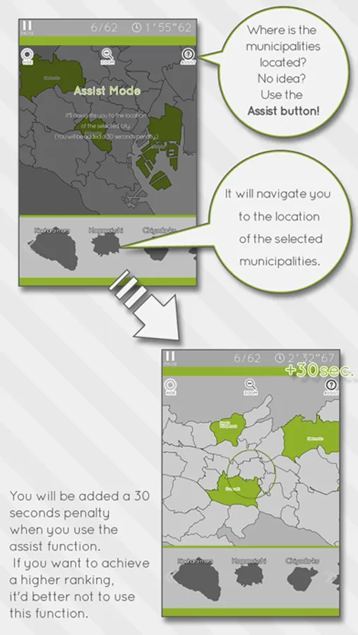 When you're stuck on finding the location of a municipalities, use the [Assist] function. It will help you to navigate the correct location without hassling yourself.