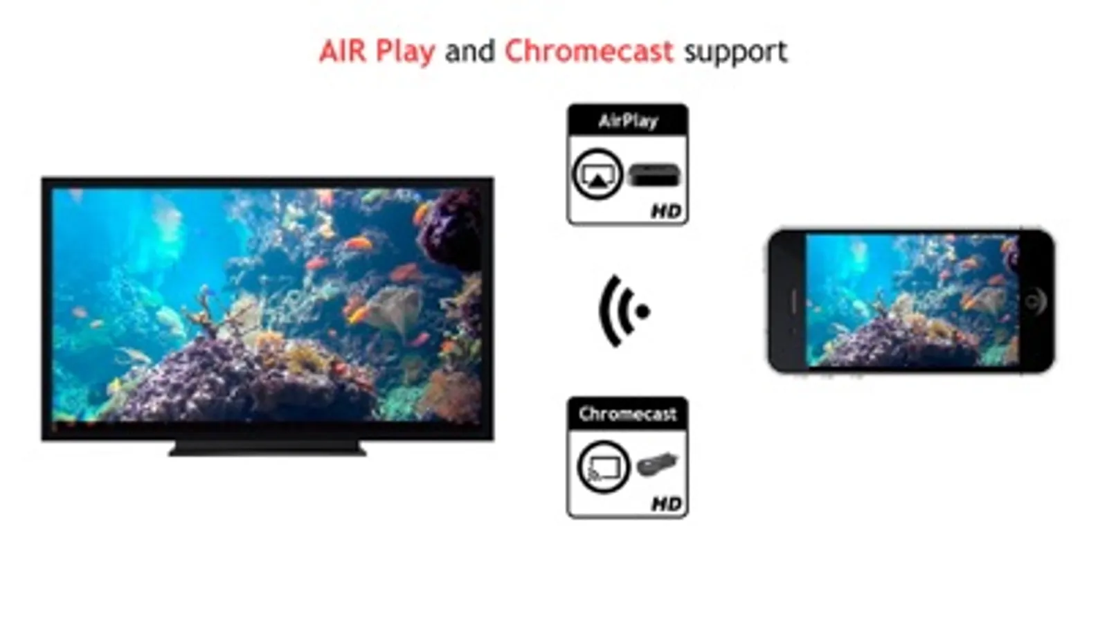 - Ability to work with the Apple TV (Airplay) and Chromecast