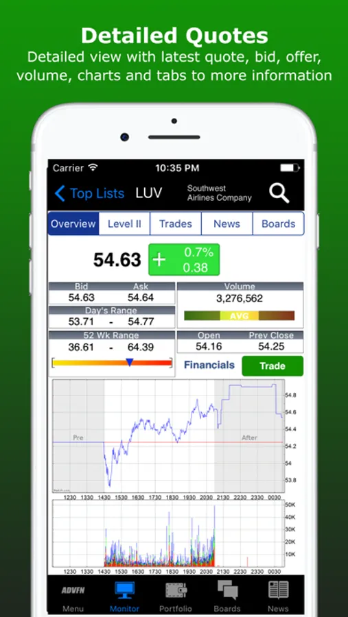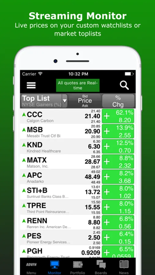 Automatically syncs with your ADVFN account, allowing you to view your Monitor, get live prices, post on the bulletin boards and check Level 2 wherever you are.
