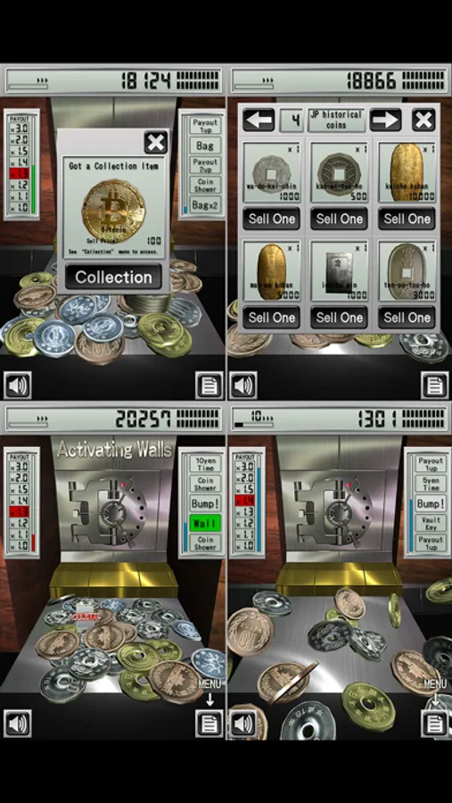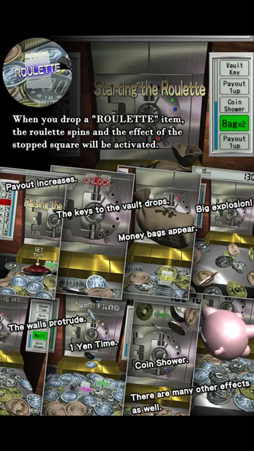 From the center vault, rare coins will come out. Such as old coins, foreign coins etc. with variety of over 140.