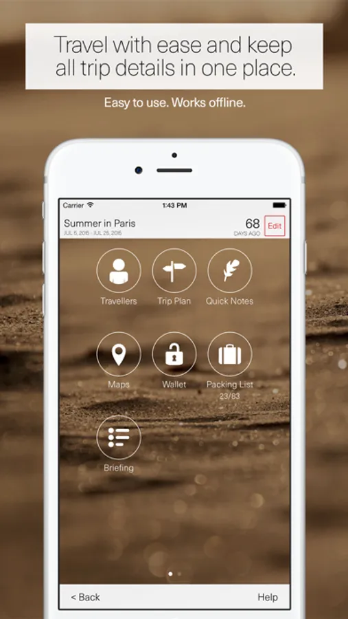 Plan your trip with absolute freedom. Organize your travel plans, document your journey, share your trip and keep all trip details in one place. Easy to use. Works offline. Your travel companion on the go.