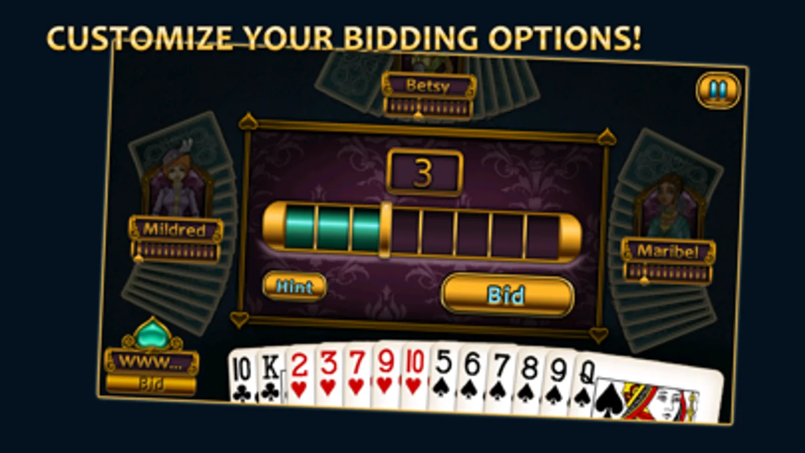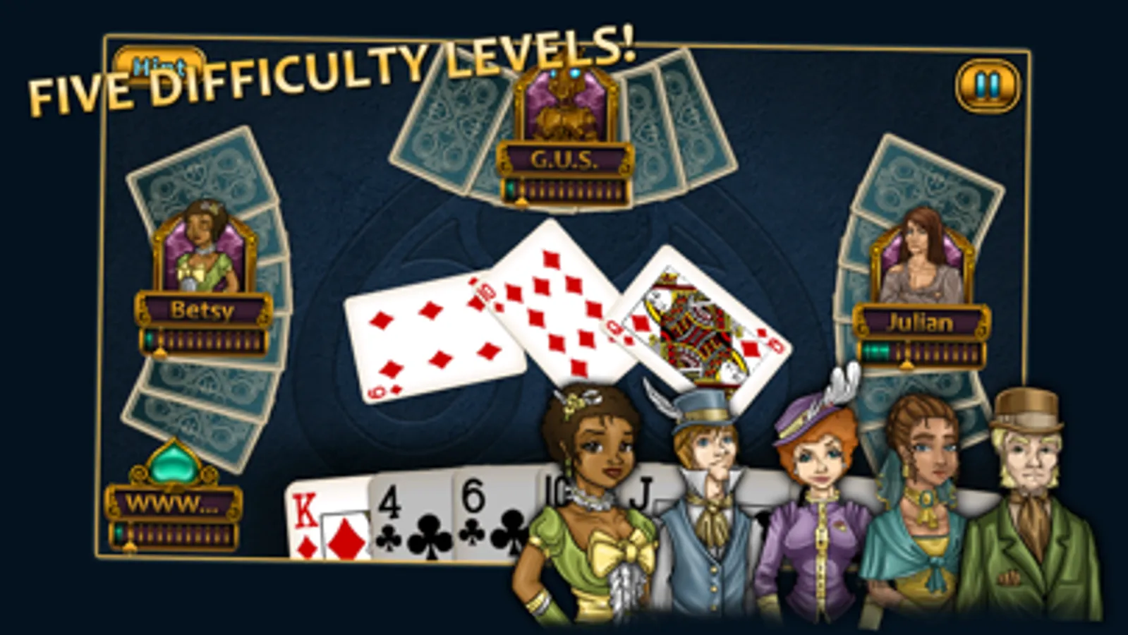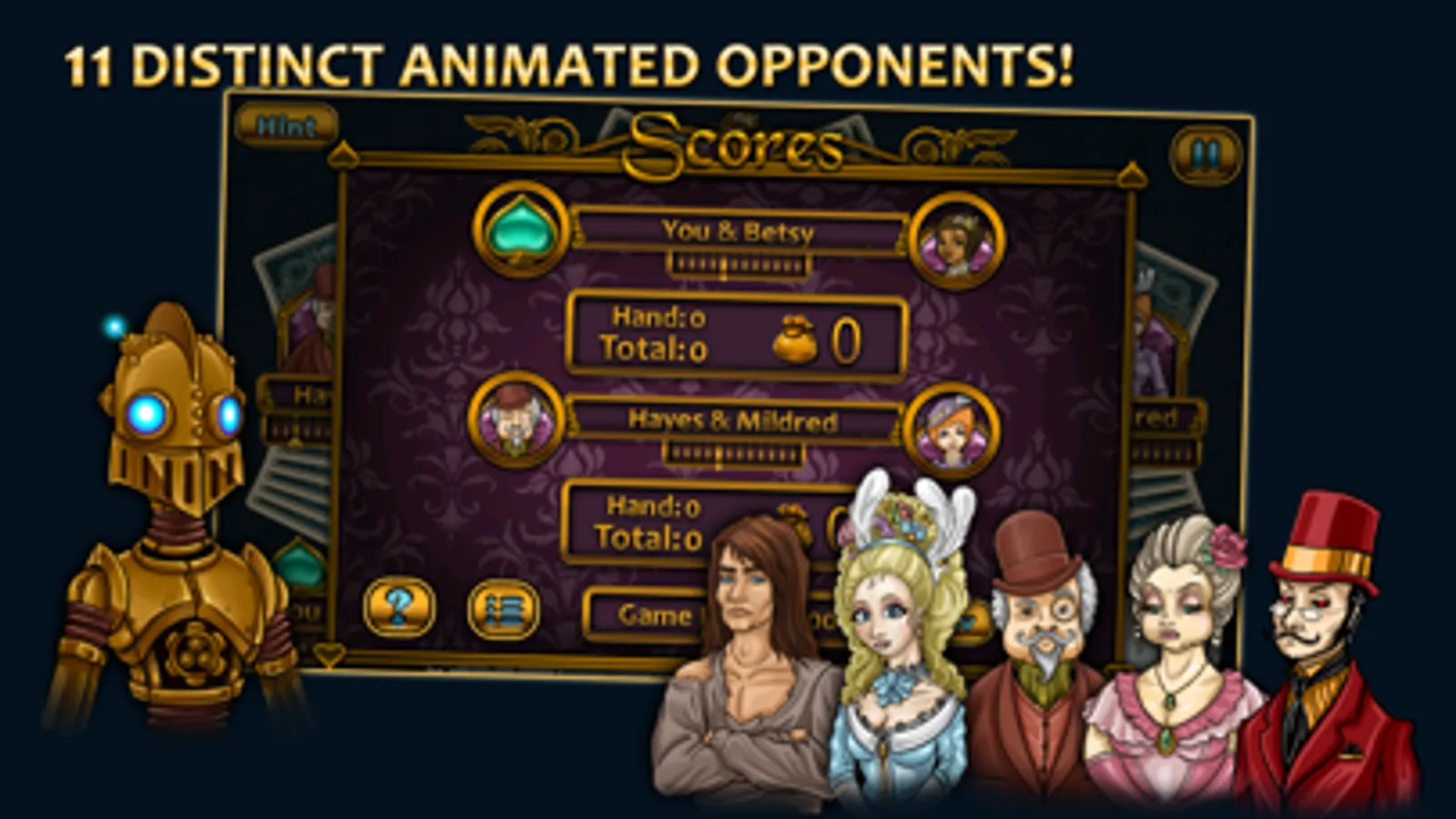 Aces Spades brings the classic card game to mobile with gorgeous HD graphics, intuitive AI, and fully customizable gameplay. You’ll team up with one of 11 beautifully rendered Victorian-era characters to test your skill against a variety of colorful opponents, each with their own unique styles of play.