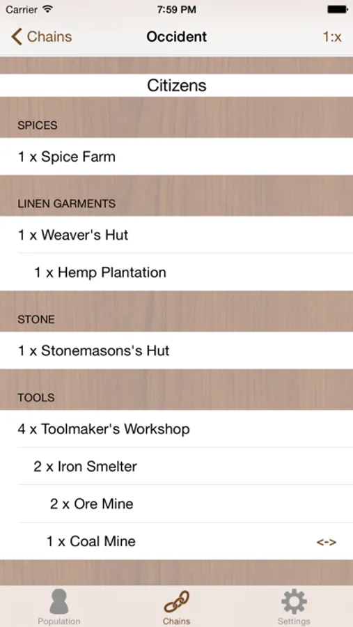 You can also view the production chains. They show the relations between the buildings, so no goods will be produced useless anymore.
