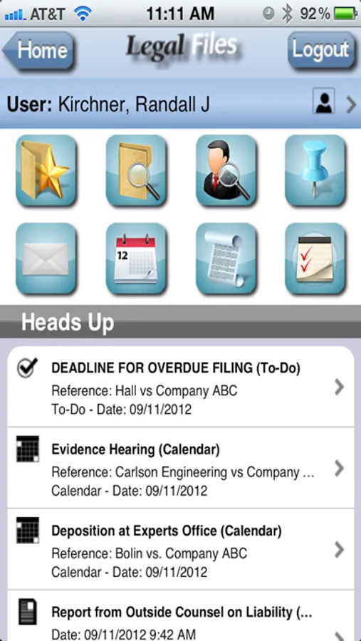 Note: This application is a companion to Legal Files software for existing users and requires a mobile license. Please contact Legal Files at Support@LegalFiles.com for assistance.