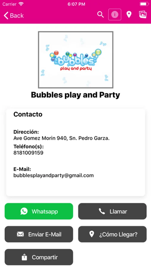 - Ver un mapa de la ubicación del proveedor y obtener la ruta y direcciones para llegar desde el lugar donde te encuentres