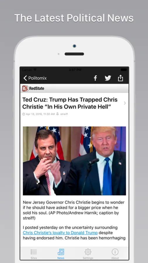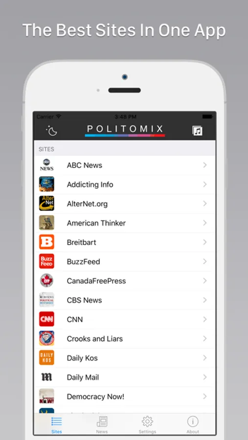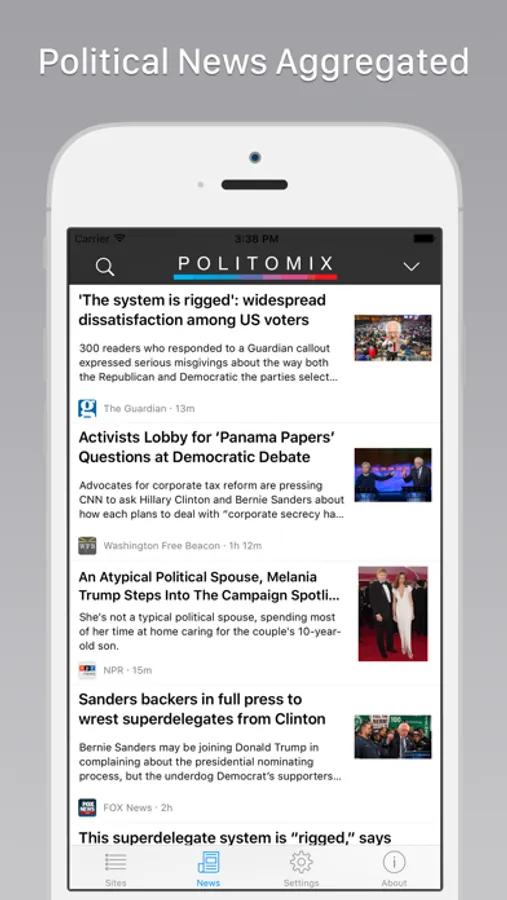 Politomix is the political news aggregator where left, right and center mix. Politomix streamlines and delivers the latest political news headlines around the clock. The app aggregates and captures the top political stories from more than 40 of the web's best sources in one place.