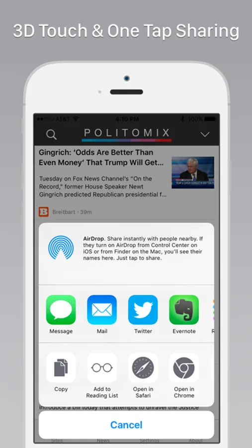 Flick through stories with the gesture based reader, navigate to the web via a full screen web browser, browse your favorite sites, or stream a podcast, all the best political news sites are just a tap away.