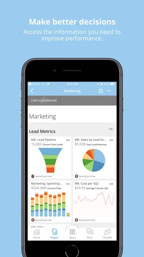• See what data and conversations are top of mind in your organization. A customizable home page surfaces intelligent insights about your business.
