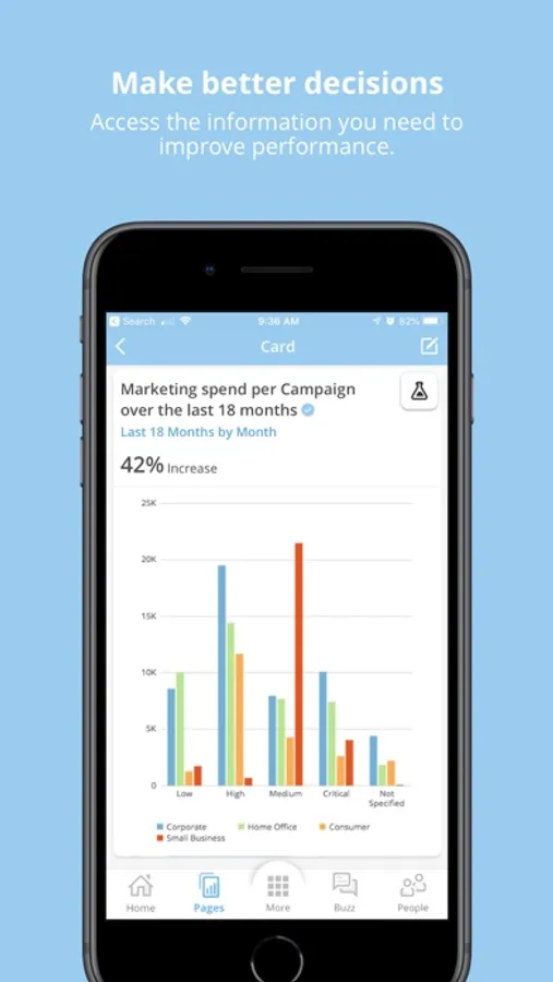 • Use intuitive data exploration tools to drill down to details without losing context. Move between the big picture and details with just a tap.