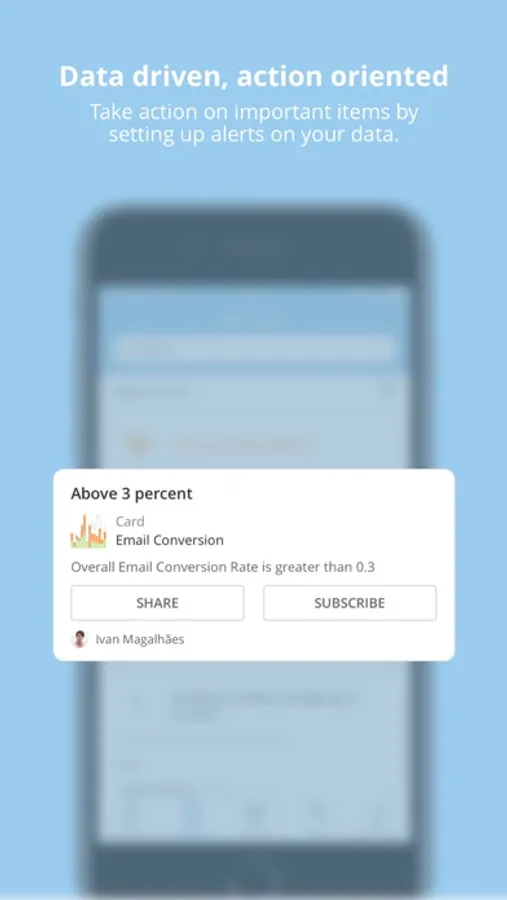 • Get custom alerts on your phone when your KPIs change. Define criteria for when to receive text or mobile app alerts about your KPIs.