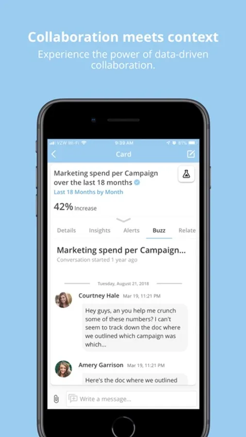 • Collaborate on data with built-in chat. Chat with your team about the data you’re seeing in real time.