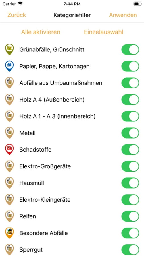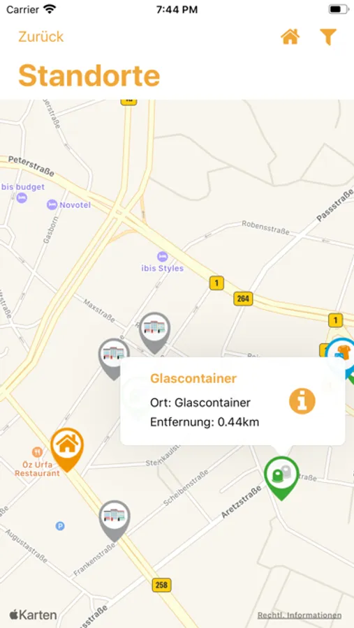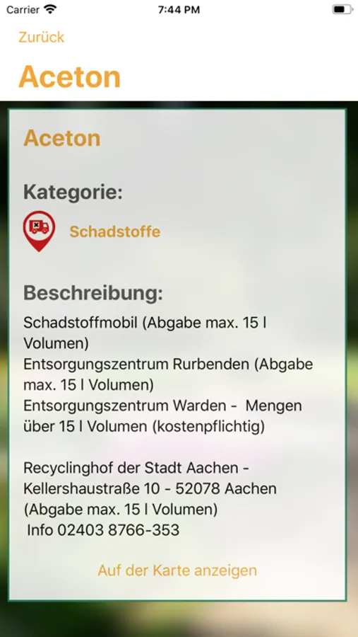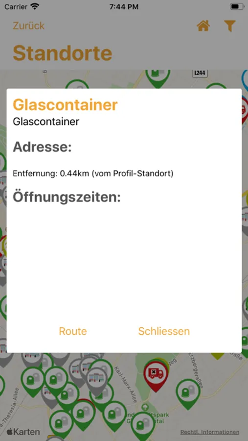 • eine Übersicht aller Entsorgungsstandorte mit Öffnungszeiten und einer Routingfunktion