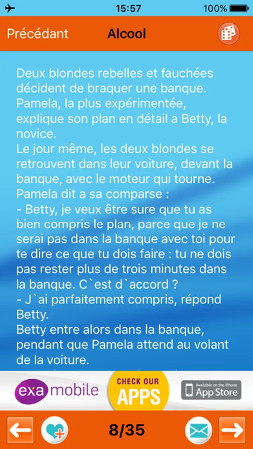 Dans cette application, vous recevez l'ensemble de 8000 de blagues et plaisanteries dans plusieurs catégories. C'est un site idéal pour les vacances, une rendez-vous dans un pub, une fête, pendant le voyage, etc.