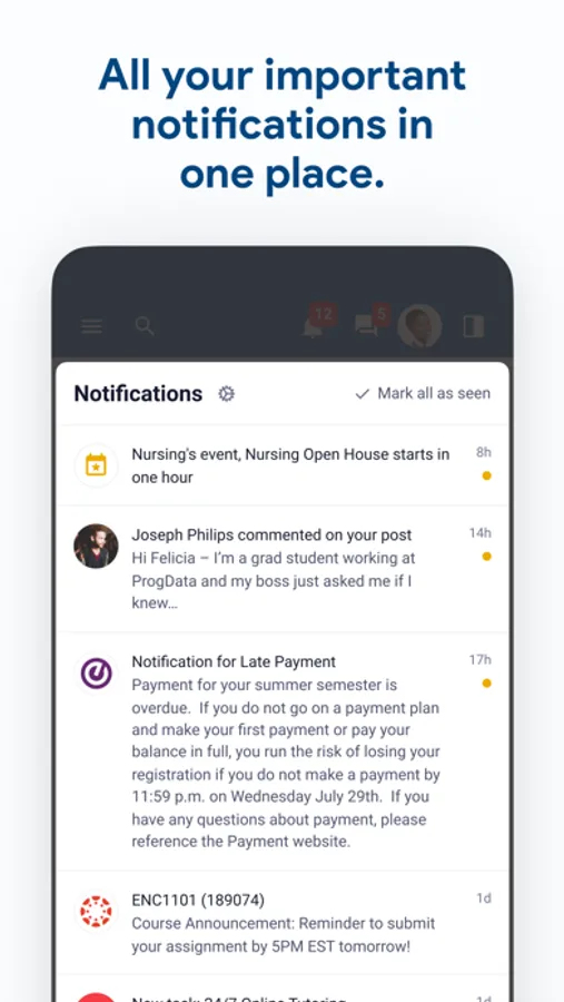 • Receive key notifications from ulearn, groups, etc.