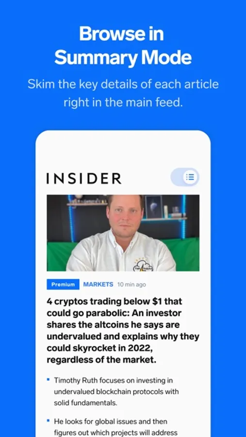 The Insider app provides you with a fast and convenient way to read business news on the go.