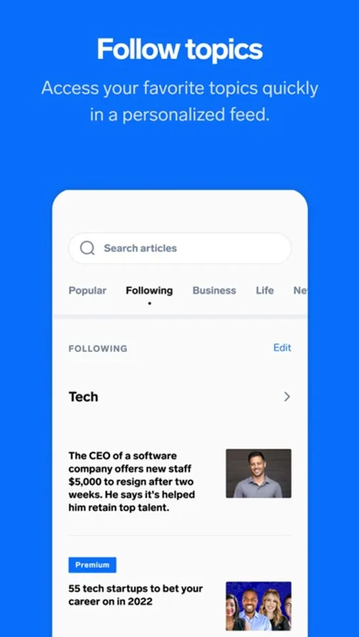 + Choose the topics you want included in your general feed so you’ll never miss the most important news that meets your needs