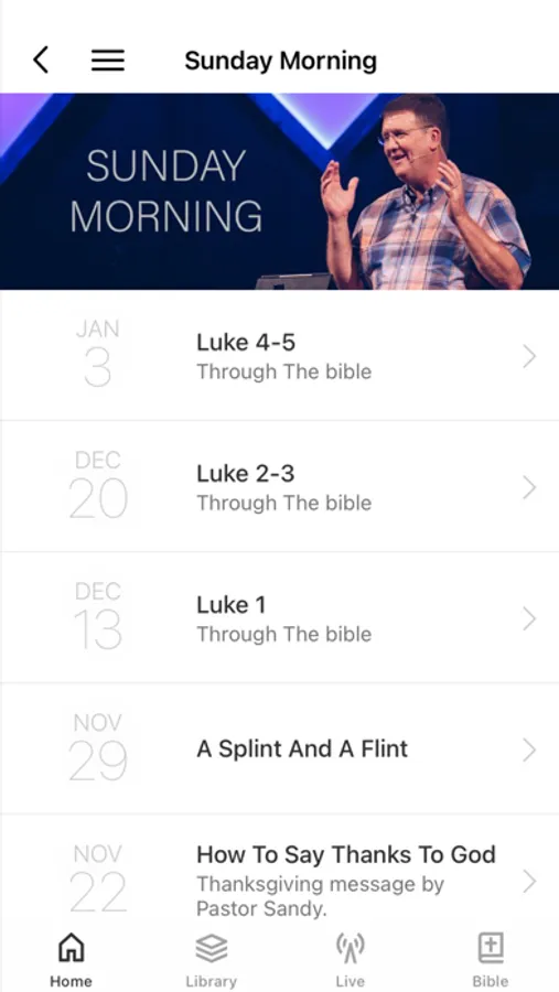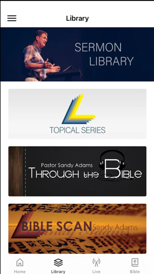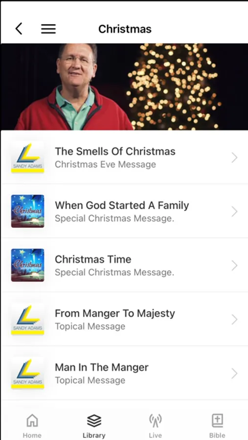 The Sandy Adams app was developed with the Subsplash App Platform.