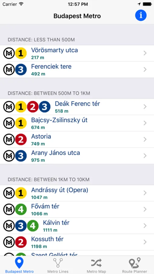 Это программа предназначена для тех, кто в Будапешт хочет пользоваться Метро в качестве транспортного средства. С помощью программы легко найти ближайшую станцию Метро. Программа определит расстояние до ближайших станций Метро по отношению к точке нахождения и покажет их вам на карте и в виде списка.