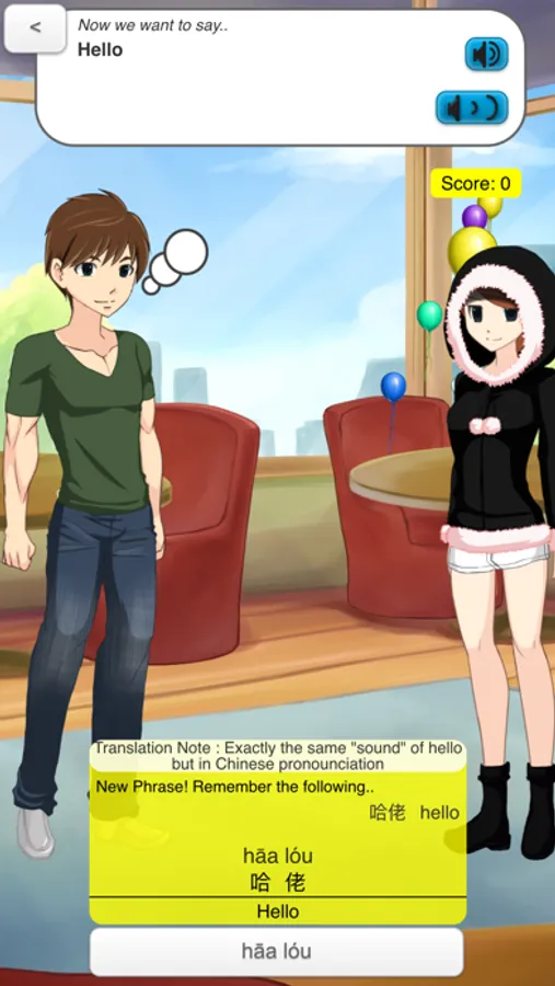 StudyChat Cantonese has been intentionally designed as a fun supplementation to existing study methods. There are many excellent resources for learning grammar and vocabulary. But there are few tools, aside from watching TV with subtitles, that simulate conversations for practicing what you have already learnt.