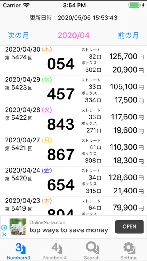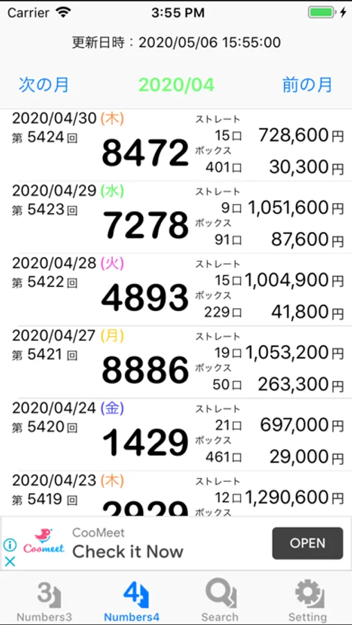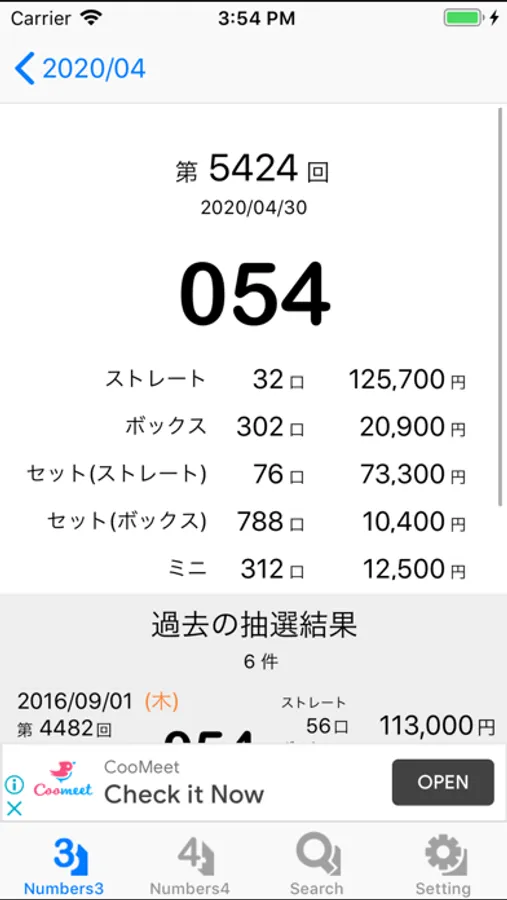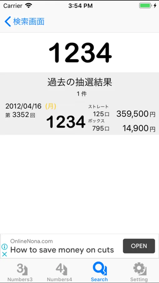 このアプリを使えば、ナンバーズ3、ナンバーズ4の結果速報を簡単に見ることができます。