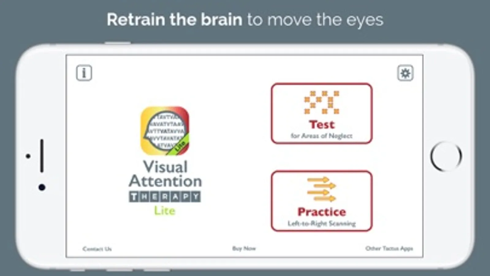 Visual Attention Therapy Lite gives you a free taste of the customization and utility of the full app: Visual Attention Therapy. This lite version lets you try Test and Practice modes with one level and layout, but is otherwise a fully functional app, allowing you to try 1 or 2 targets, all the signal and target colors and styles, and send e-mail reports.