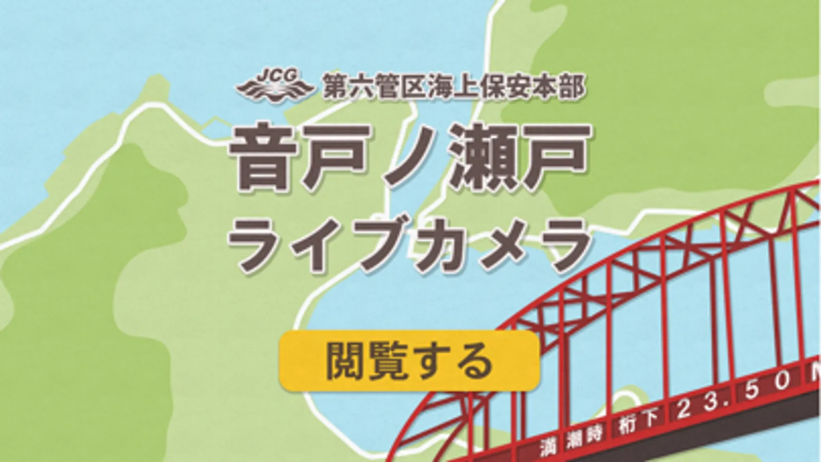 音戸ノ瀬戸は、広島県・呉市の音戸町と警固屋町との間にある狭水道です。ここは、安芸灘と広島湾北部の間を航行する際に通過するコースであり、多くの小型船が通航しています。しかし、当該水道は最狭部の可航幅が60メートルと幅が狭く湾曲しており、見通しも悪く潮流が強いため、通航する際は充分な注意が必要あり、航行する際の『参考情報』としてライブ映像を提供しています。