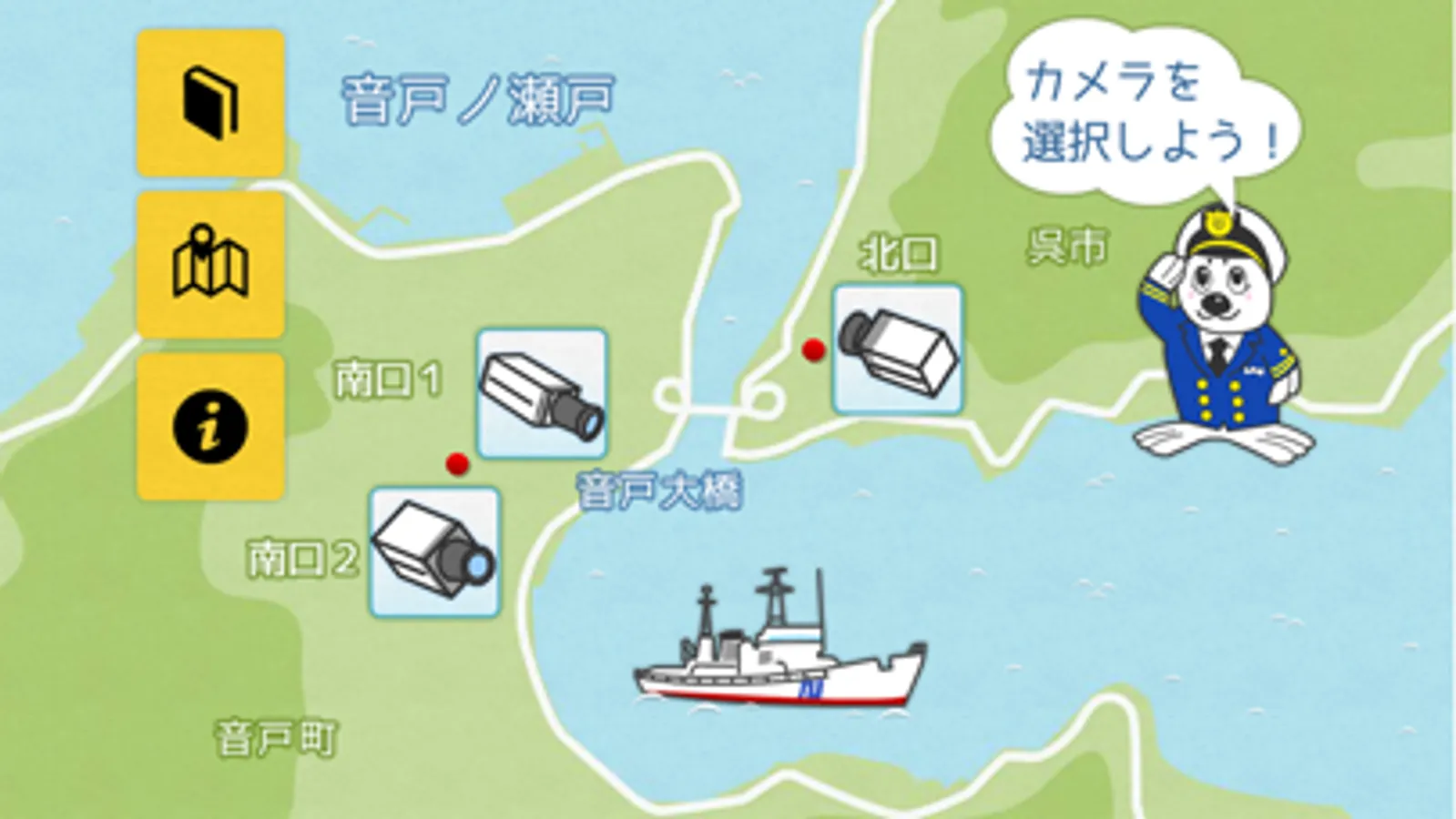本アプリケーションは、第六管区海上保安本部様が『海の安全に関する情報』として提供されている『音戸ノ瀬戸』のライブ映像をスマートフォンで閲覧できるように弊社が開発元として提供するものです。